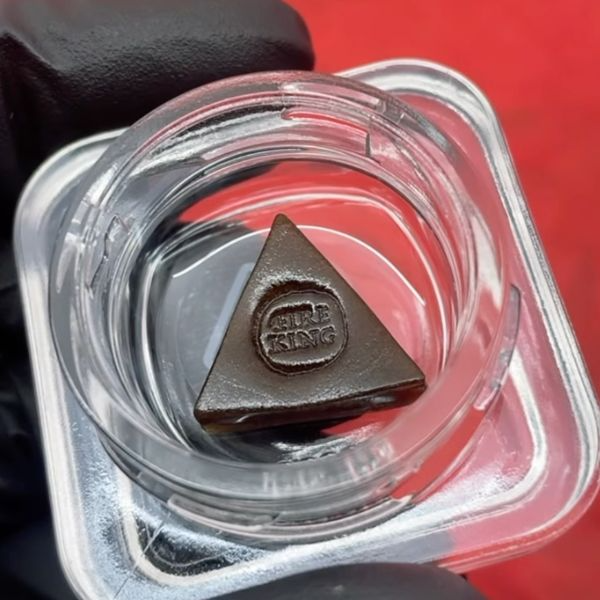 A Whitethorn Rose cured flower pressed hash triangle from Fire King. (David Downs)